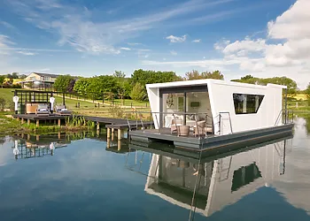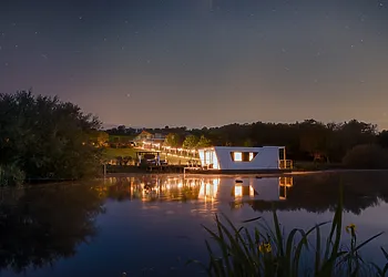 - Floating houseboat on private lake