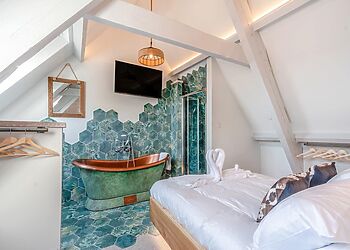 - King-size bed with freestanding bath